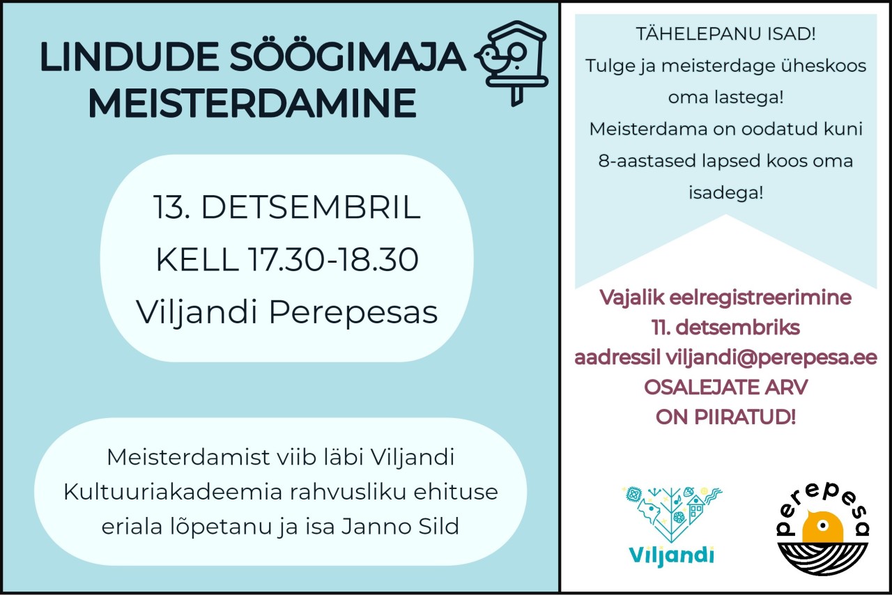 Meisterdamine toimub 13. detsembril kell 17.30-18.30 Viljandi Perepesas! 🐥🏠