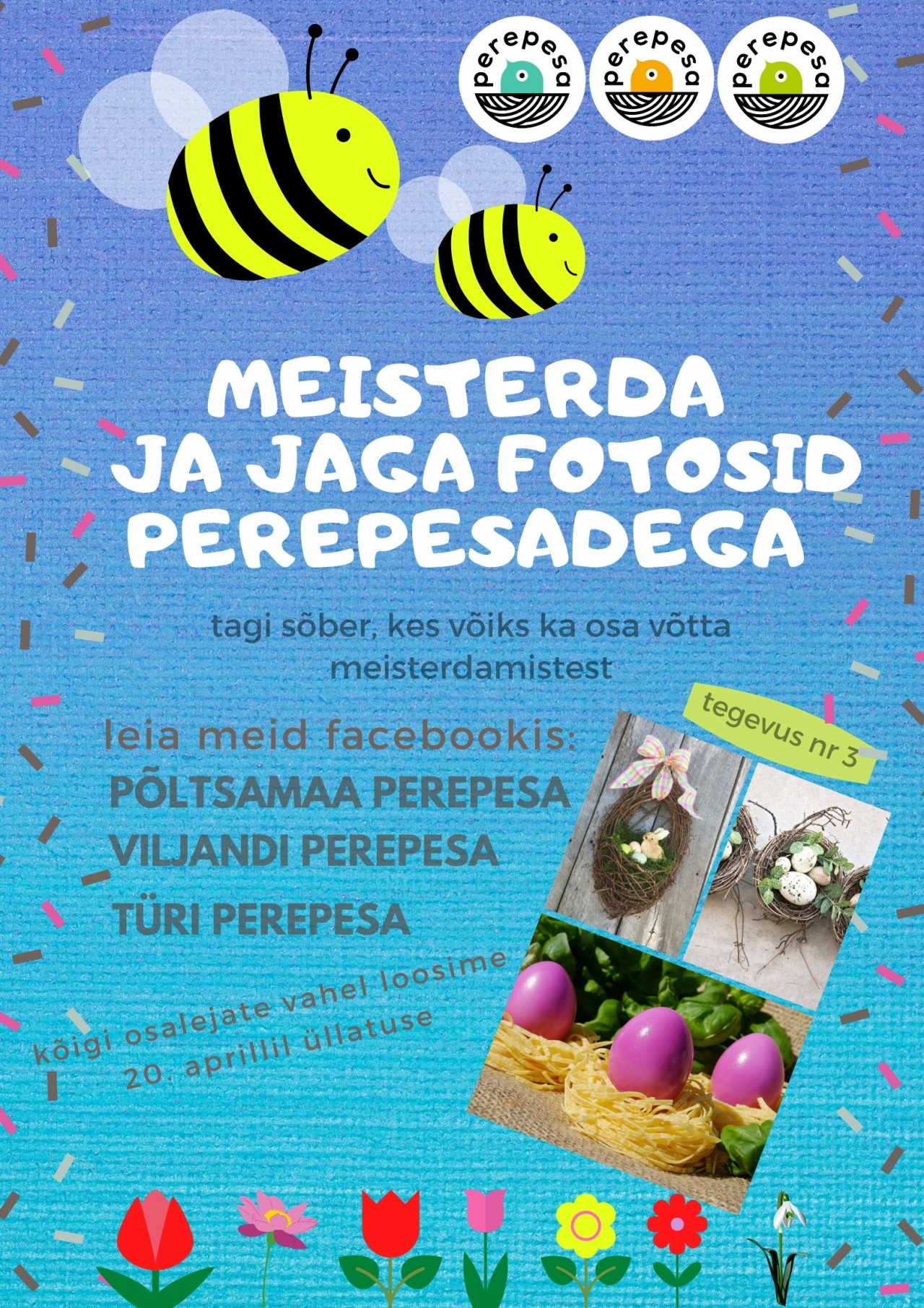 Aitäh peredele, kes on juba osa võtnud tegevustest! Perepesad lisavad täna kolmanda ja viimase ülesande, milleks on toreda pesa valmistamine olemasolevatest vahenditest. Vahva on kui saate pildi teha ja mõni väike jänku võiks ka fotole jääda! 🐥🐰🐣🐇