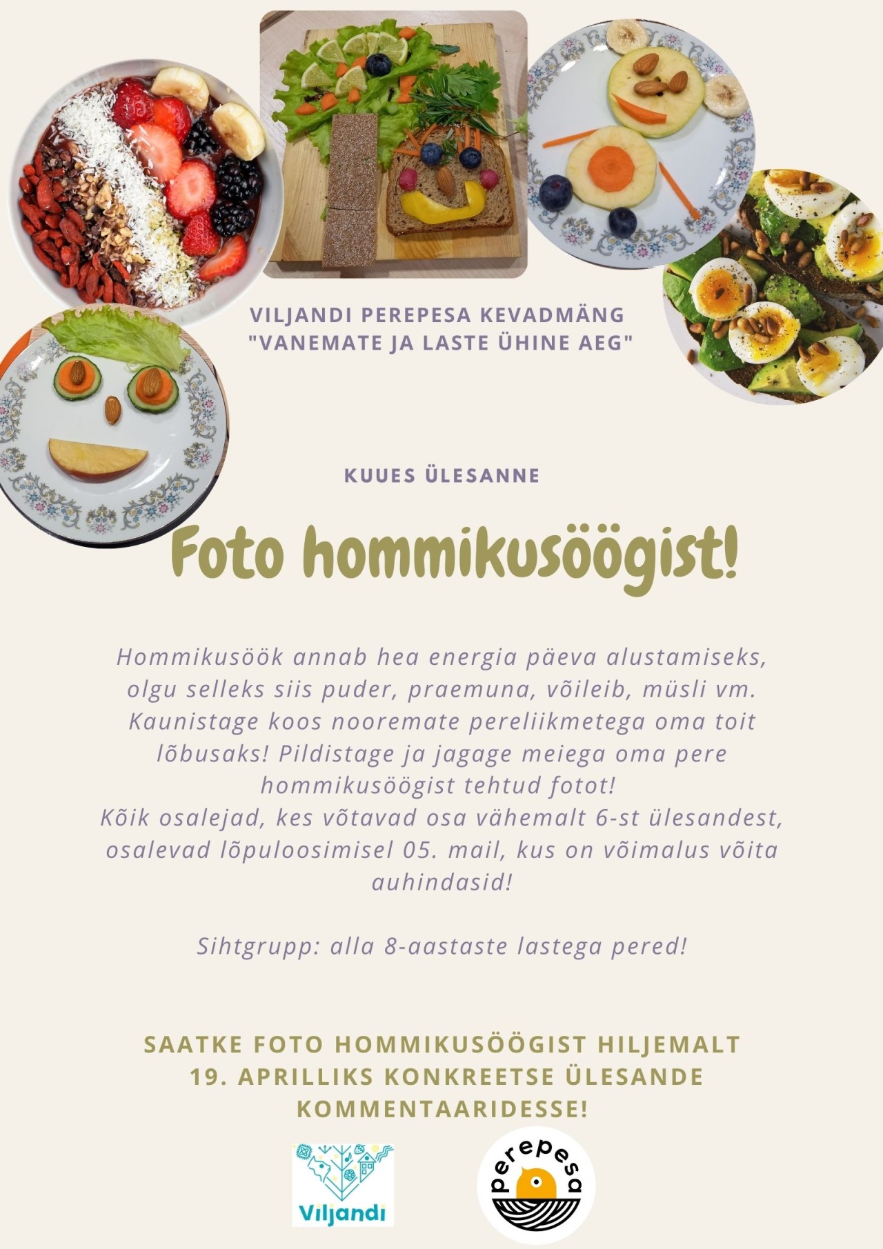 - Pildistage ja jagage meiega oma pere hommikusöögist tehtud fotot sama postituse alla kommentaaridesse Viljandi Perepesa Facebook'is hiljemalt 19. aprilliks!