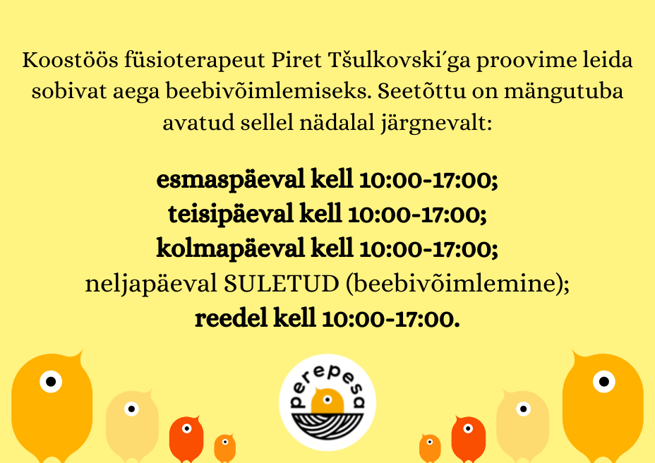 Tagasiside jõuab e-kirjaga Perepesa postkasti. Vastame viie tööpäeva jooksul. Tagasiside avalikuks kasutamiseks küsime eraldi teie nõusolekut.