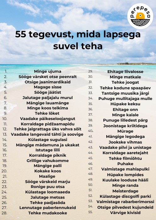Kui Sa mõtled, mida suvel koos lastega teha, siis pildilt leiad 55 ideed. Ilusat sooja suve!