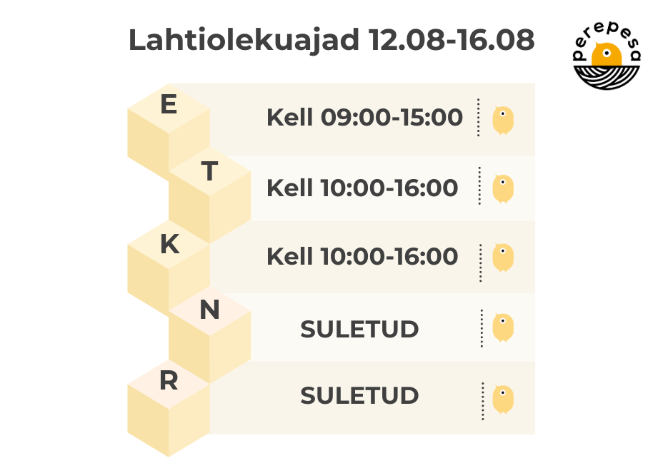 12.08-16.08 lahtiolekuajad
