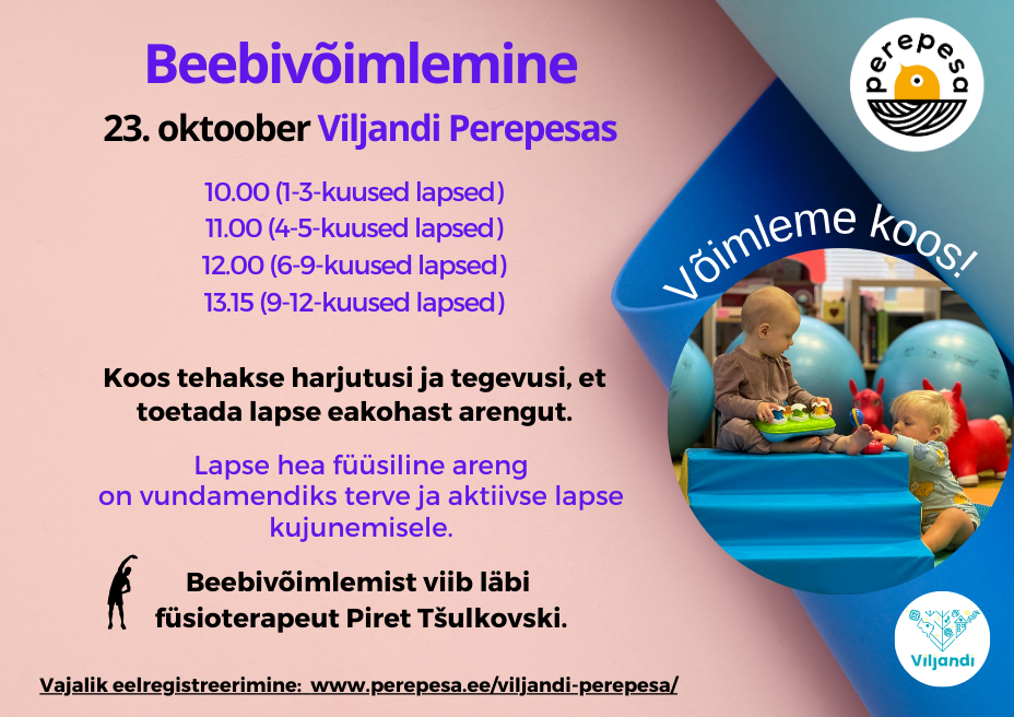 Vajalik eelregistreerimine aadressil: https://www.perepesa.ee/viljandi-perepesa/teenused/beebivoimlemine