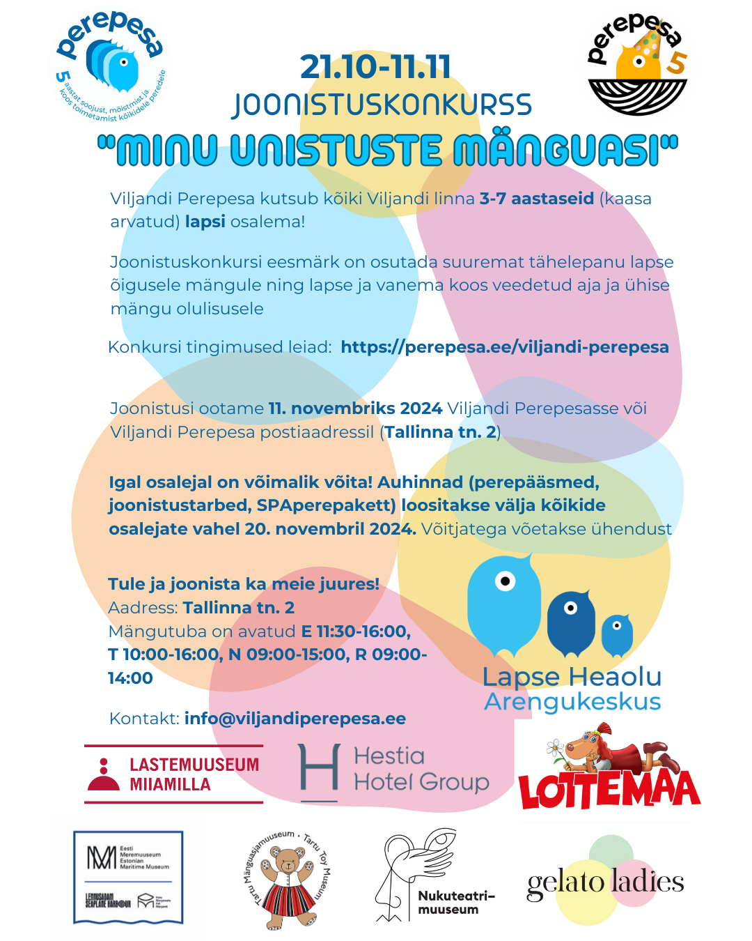 Viljandi Perepesa koos SA Lapse Heaolu Arengukeskusega kutsub Viljandi linna 3-7 aastaseid lapsi osalema joonistuskonkursil, et osutada suuremat tähelepanu lapse õigusele mängule ning lapse ja vanema koos veedetud aja ja ühise mängu olulisusele.
